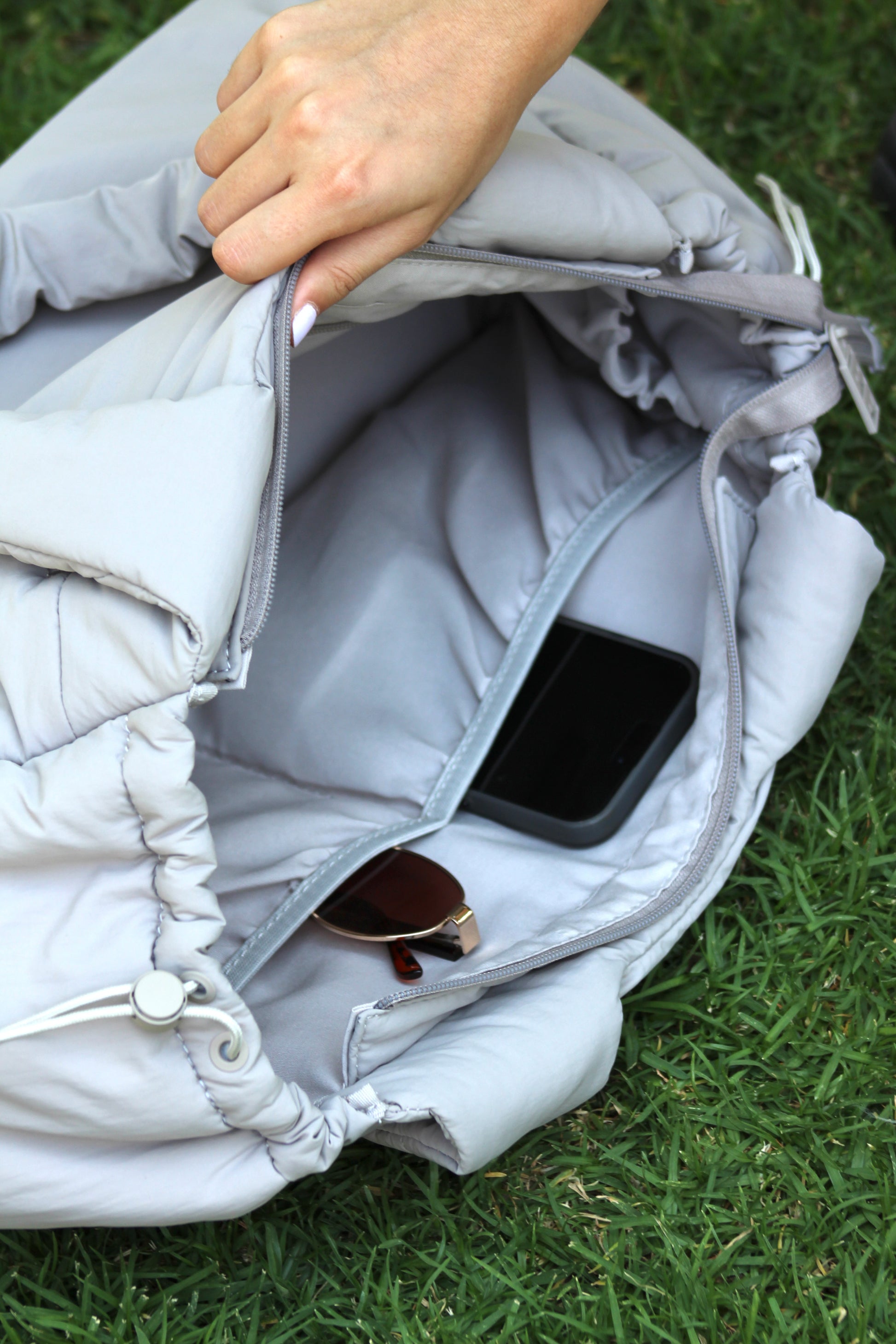 En su interior, Sol está diseñado para facilitar la organización: en los costados cuenta con separaciones elasticadas, perfectas para botellas, accesorios o prendas pequeñas. En una de las caras internas incluye una separación a lo largo con dos bolsillos abiertos, ideales para ordenar lo esencial, y en la cara opuesta un bolsillo pequeño con cierre para mayor seguridad.