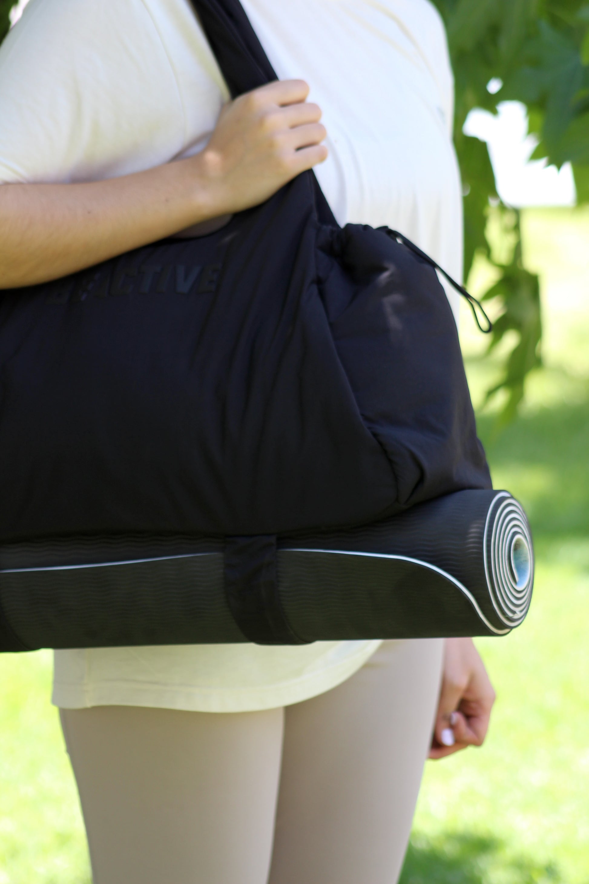 En la parte inferior incorpora bandas ajustables integradas al diseño, pensadas para sujetar de forma cómoda y segura el mat de entrenamiento, haciendo de Sol el bolso ideal para yoga, pilates o rutinas funcionales.
